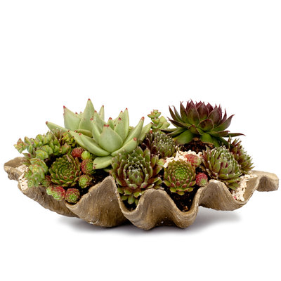 (Photo right: Giant shell planter -Photo Sunset)