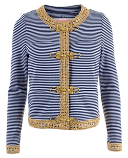 It is about combining elegant daytime jackets with gold buttons, or decorative vintage passamantery with city shorts and sandals propped on high heels.