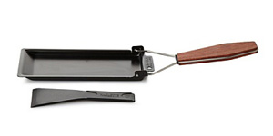 Many serving utensils are part of the ritual of putting cheese on the table, from knives, cleavers, marker signs to fondue pots, raclette grill and cheese cart.