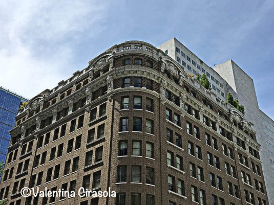 Tall and short order. A very tall building shields this classical elegant building in which Banana Republic store resides. Cheap merchandise sold in a classical architecture…..