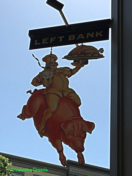 I would love to know why the Left Bank, a French restaurant chose a fat chef riding a pig for their sign. Such an unusual choice, but very fun. Somehow, when I see this sign, I think of their food as homey, traditionally French and country good.