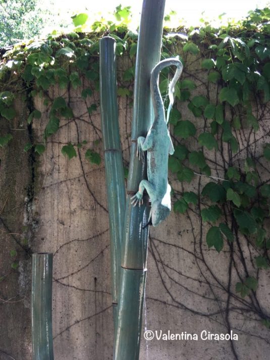 Sitting at the round benches, surrounded by a nice vegetation, one can watch the exotic lizards playing with water in another unusual fountain.