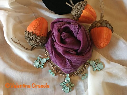 Trying a combination with a cool color on the other side of the color wheel it’s not just good, it’s excellent. Orange, purple and a bit of turquoise is dynamic, zesty, eclectic and playful. As for jewelry, gold tones will go better with orange and silver will mix better with purple, it’s up to the wearer getting the sun energy from the gold or the moon energy from the silver.