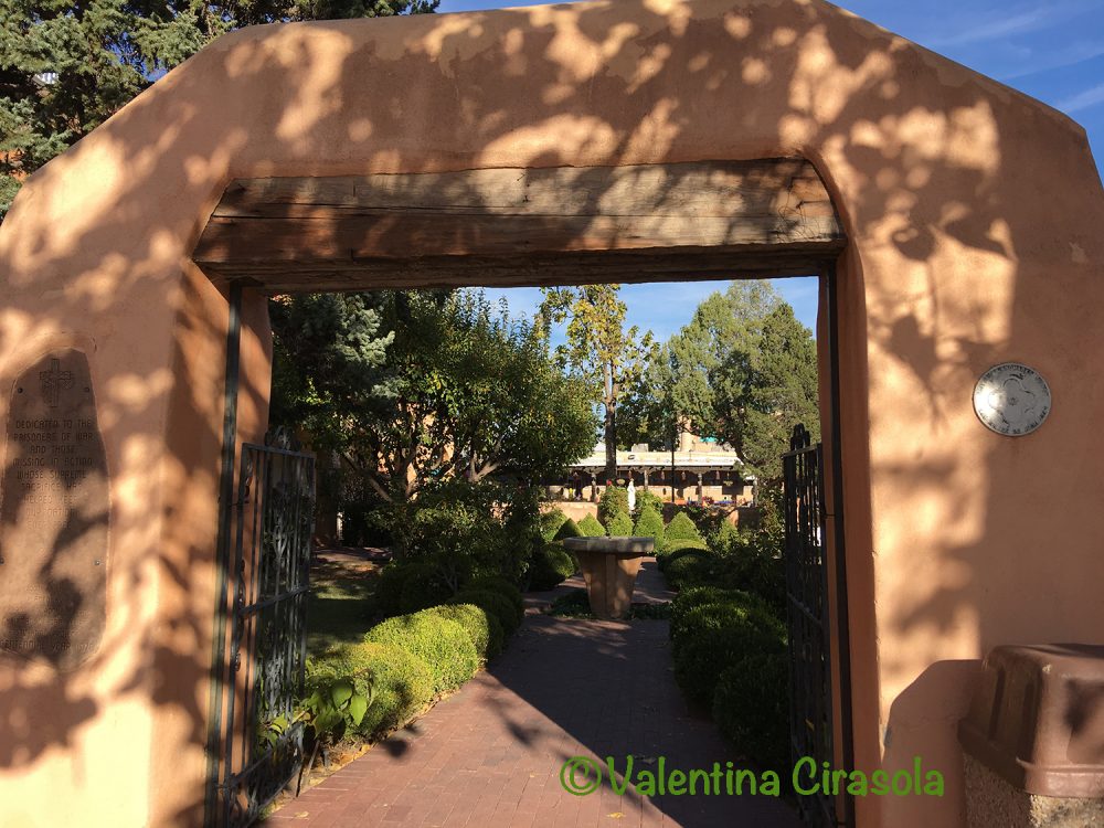 The lintel beam over the iron gate is very appealing to me as a rustic garden feature, especially when the opening leads to another glowing garden vignette with colorful flowers. This is the rectory’s courtyard of San Felipe de Neri Historic Church built in 1793 in the Old Town Albuquerque.