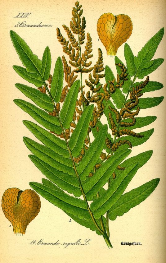(Below: Royal fern  https://pt.wikipedia.org/wiki/Osmundaceae)