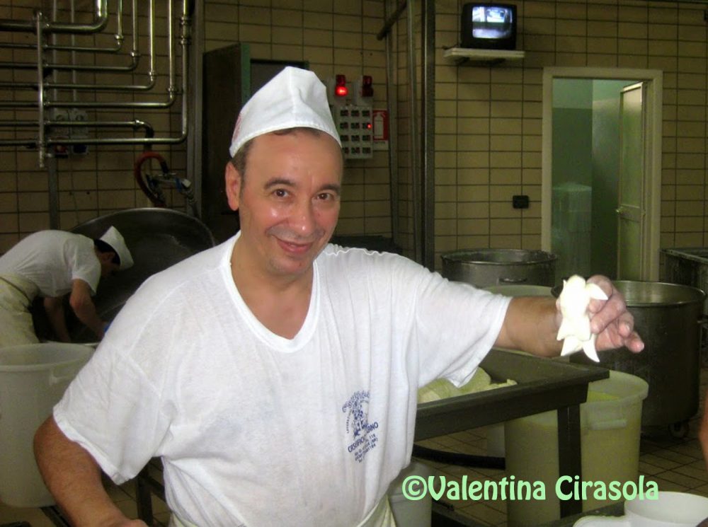 The man making mozzarella shows happiness for the piece he just created for me before my eyes. His face to me is very expressive and sincere. His eyes invite to smile.