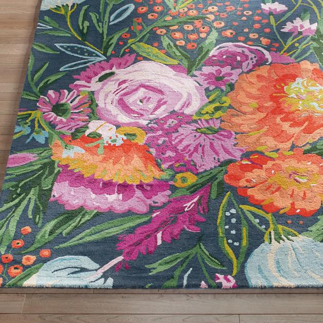 Heather rug – The description says: dramatic, vibrant, “pretty-but-edgy” floral design. Large flowers are all the rage today, on wallpapers and on rugs, don’t be afraid of looking at bold flowers, after a while the eyes get accustomed and space becomes joyful.