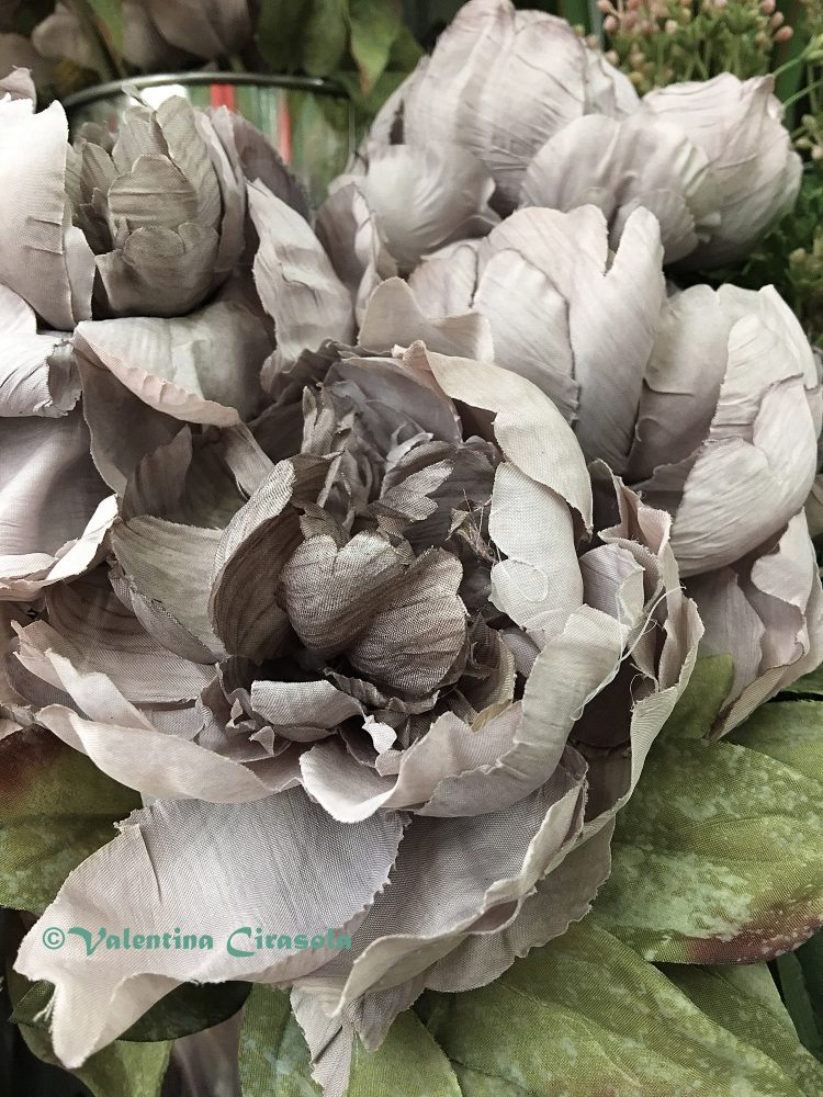 In my photo, the grey silky flowers look so beautiful next to the green silk leaves. They give light to each other. The pale green or yellow-green is best combined with grey.