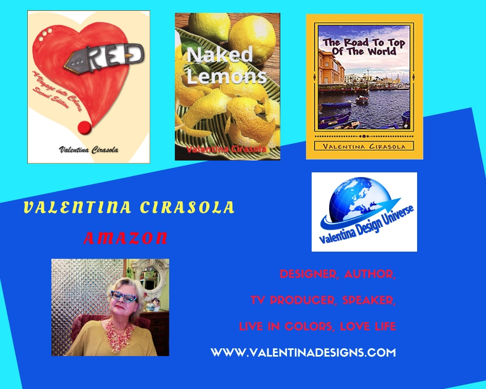 Valentina Cirasola is an interior-fashion designer, author of 5 published books, a storyteller, and a blogger of many years. She has conceived a few new books of various subjects to which she is working simultaneously. Her books are non-fictional practical ideas to apply in the home, fashion, cooking, and travel. She never gives up trying new things and doesn’t fear failure. Some years ago, Valentina became a TV producer/host producing shows under her label: Valentina Design Universe.