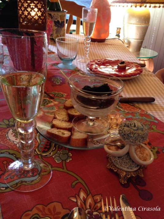 Somehow I maintained my tradition on a smaller scale. On Christmas eve, I prepare a few fish specialties and Christmas day is about meat. On the eve, caviar opened the dinner experience, followed by shrimps with fregola and dandelion cooked in a clay pot, cod and potato cakes, blue crabs, Christmas cookies, coffee, and Belgium chocolate with sea salt.