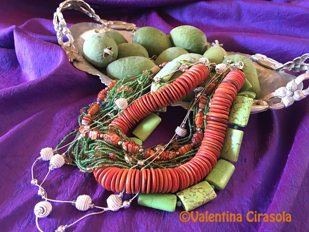 From that moment on, I created one-of-a-kind pieces, which I called colliers. A collier is a term in jewellery making. It indicates a large necklace piece which covers a major part of the neckline and chest. My pieces are made with yarn and beads, and they fit the description of colliers. Their role is to embellish the neckline and keep the neck warm.